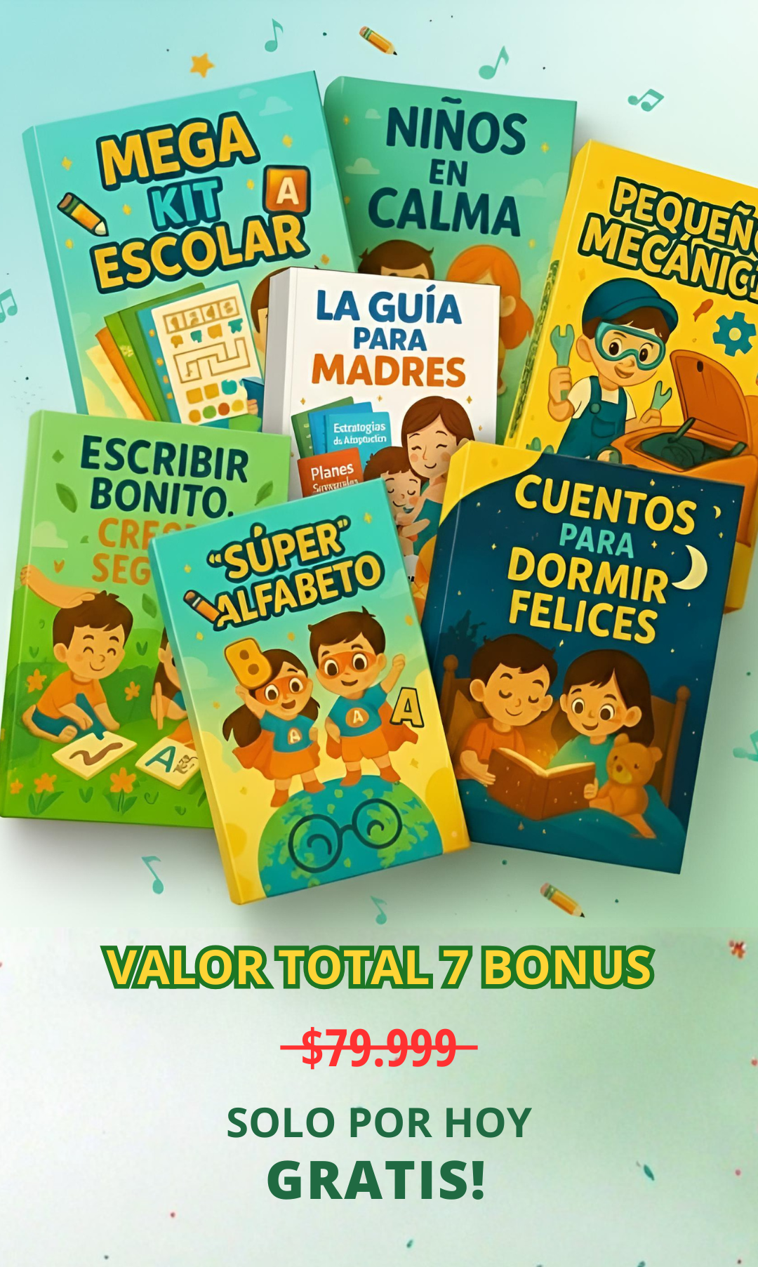 Si en una semana tu hijo no muestra más interés por las letras, no intenta leer por su cuenta o no disfruta el material, podés pedir un reembolso total.